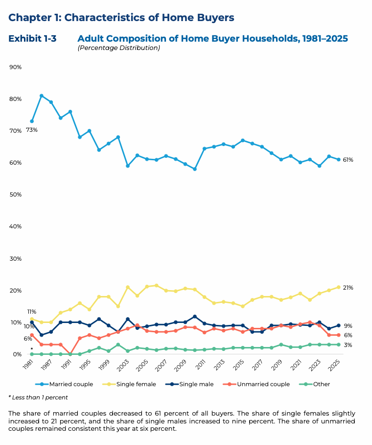 While married couples still make up the majority of buyers, the overall mix continues to diversify.