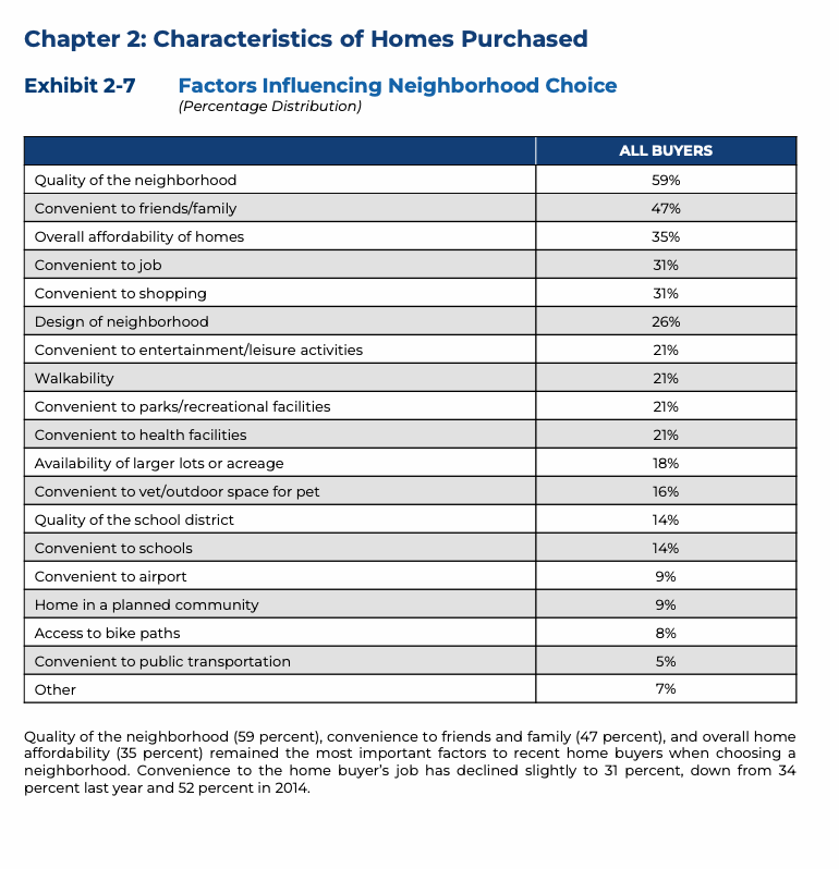 When choosing where to buy, neighborhood quality remains the top factor for most buyers.